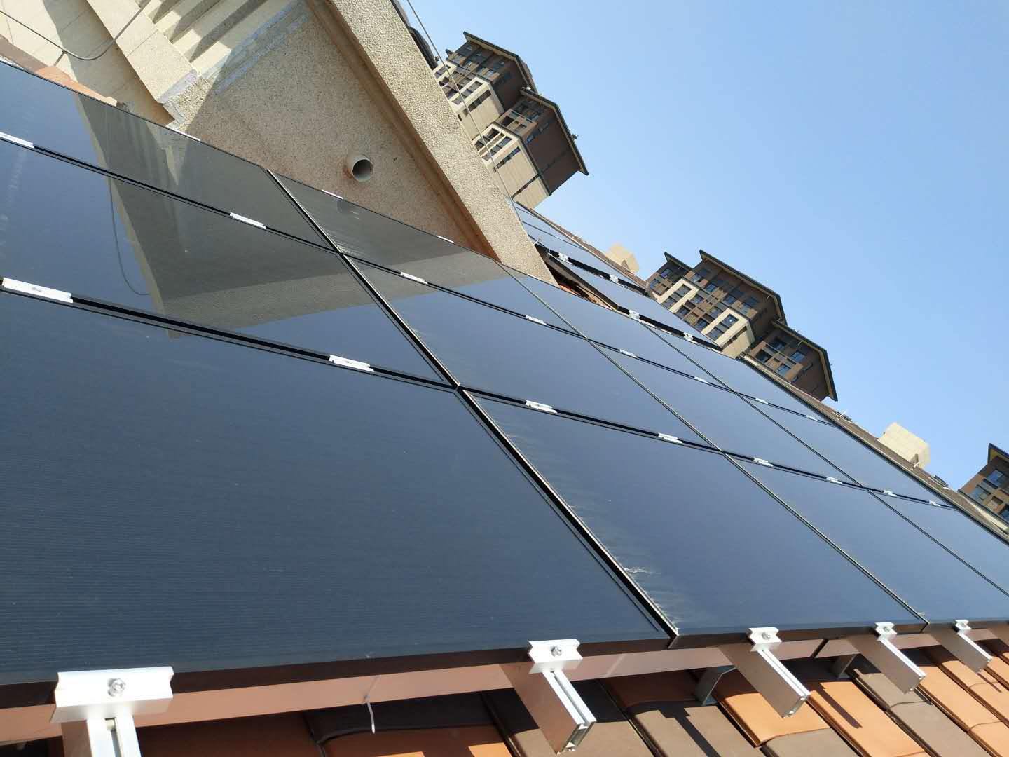 中國(guó)《高層建筑混凝土結(jié)構(gòu)技術(shù)規(guī)程(jgj3-2010)》第1.0.2條規(guī)定,10層以上、28米以上的住宅和24米以上的其他高層民用建筑為高層建筑。由于高層建筑的高海拔,高層建筑太陽(yáng)能工程需要解決的首要問(wèn)題是安全問(wèn)題。因?yàn)樵诟邔咏ㄖ⑻?yáng)能熱收集器通常放在外面的陽(yáng)臺(tái)或墻壁,和意外的發(fā)生下降或破裂會(huì)給行人帶來(lái)難以估計(jì)的巨大損失和相關(guān)地板,這是被認(rèn)為是最重要的問(wèn)題在高層建筑的太陽(yáng)能工程。即不僅要求產(chǎn)品安全和系統(tǒng)安全,而且要求建筑施工和運(yùn)行安全。對(duì)于分散式水加熱系統(tǒng),必須采用安裝形式,以加強(qiáng)安裝結(jié)構(gòu)的安全性。